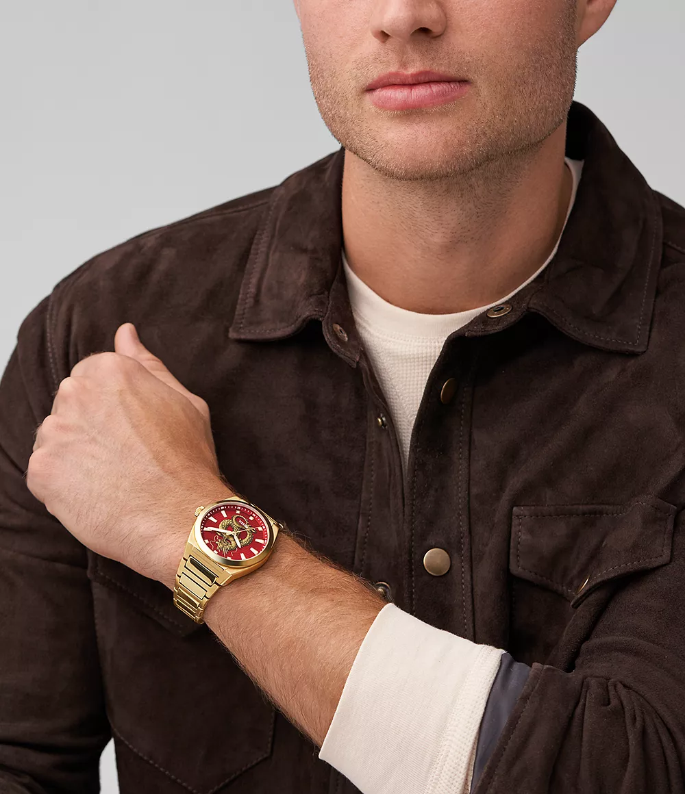 - SWWear the strength of the dragon this Lunar New Year. This Everett watch features a gold-tone stainless steel case and H-link bracelet with a striking red dial showcasing eye-catching indices, a dimensional dragon with delicate details and a slight antiqued finish.