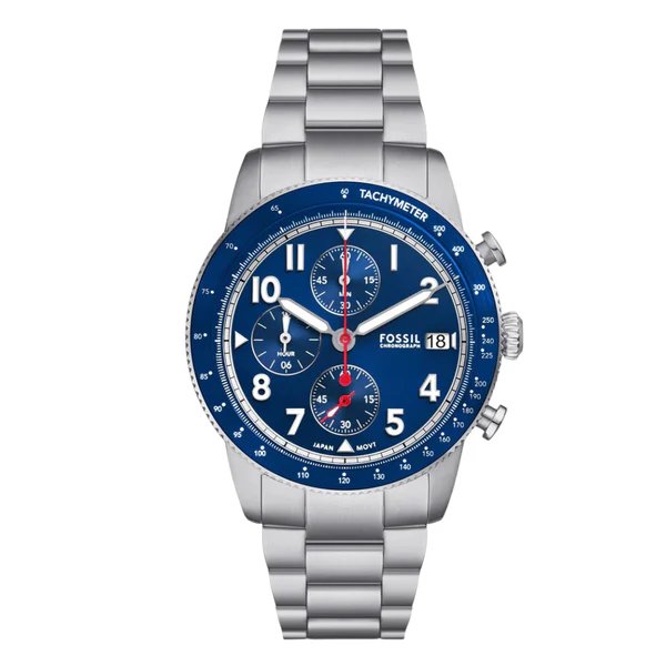 Fossil Sport Tourer Silver Stainless Steel Blue Dial Chronograph Quartz Watch for Gents – FS6047
