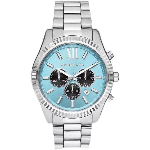 Designed with an oversized casebody for a bold twist, our Lexington watch takes sleek and streamlined to a whole new level. A bright blue dial complements the beveled topring and silver-tone bracelet strap, while a date window and chronograph details make it a truly dynamic timepiece.